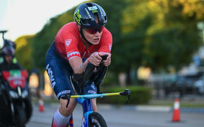 Once on the bike, it didn’t take long for Knibb to show her strength. Within ten kilometers, she surged into the lead, dropping Learmonth and setting a fierce tempo on the demanding course that featured 1,800 meters of climbing over 90 kilometers. Yet Charles-Barclay refused to yield. On a heavy climb, she clawed her way back, shadowing Knibb’s every move. Ten kilometers later, during a fast descent, the Brit regained control of the race, forcing Knibb to follow in her wheel.