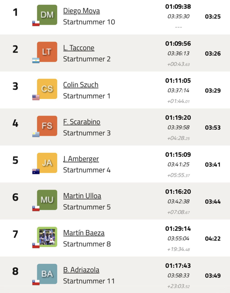 In a race that was decided by less than a minute for both the men and women, Diego Moya and Romina Biagiolo won Ironman 70.3 Valdiva today. In Chile, a beautiful battle unfolded, resulting in the following top eight for the men and women.