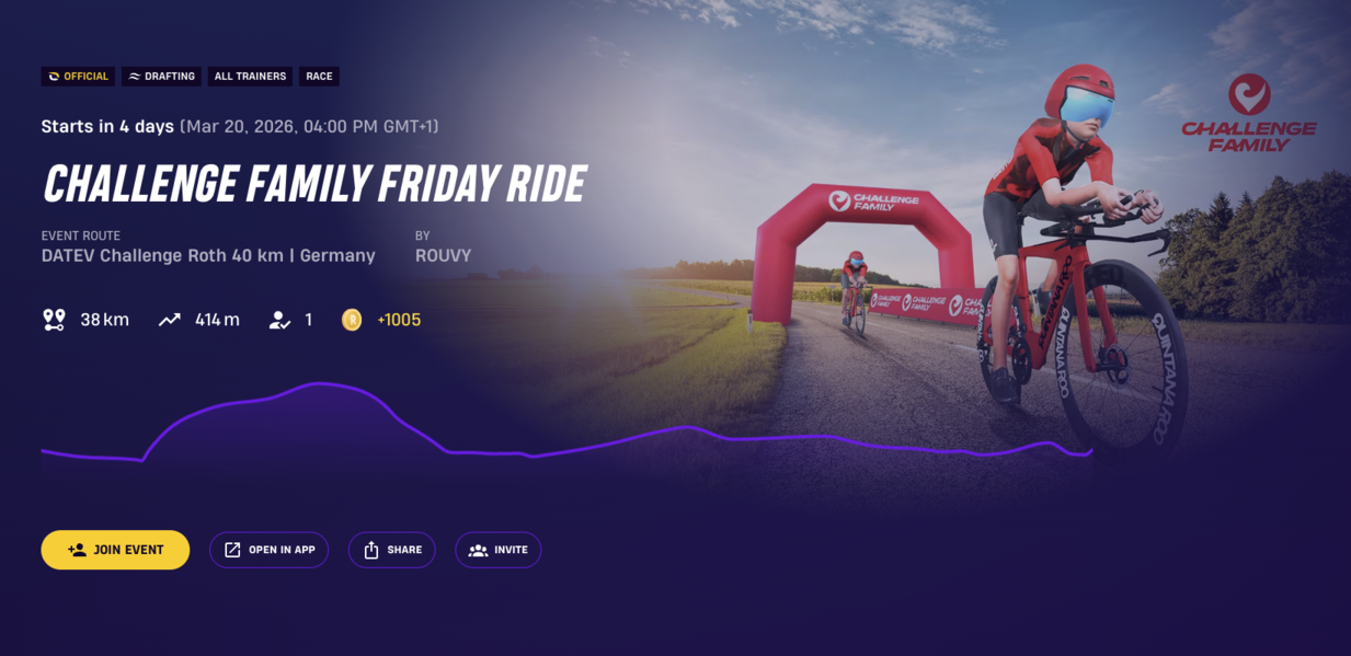 Get your indoor trainer ready: Challenge Family and Rouvy have officially announced a new weekly event series starting tomorrow, Friday, March 20. The ‘Challenge Family Friday Ride’ series allows athletes to experience iconic race courses from the comfort of their own homes.