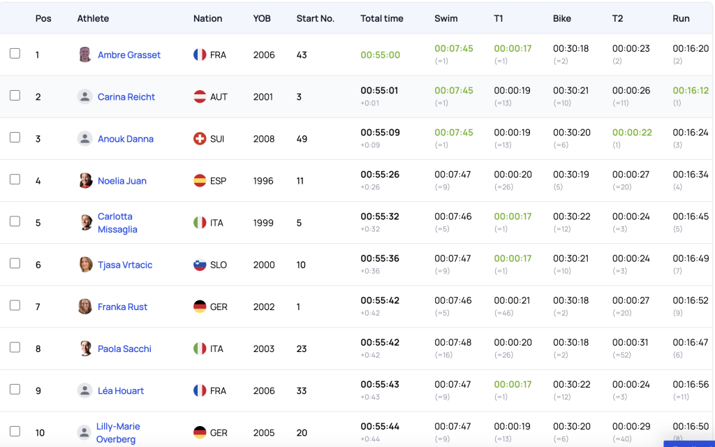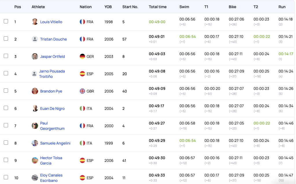 Ultimately, it was Louis Vitiello and Ambre Grasset who secured the victory at the Europe Triathlon Cup Torremolinos. Below are the top ten results for both the men’s and women’s races.