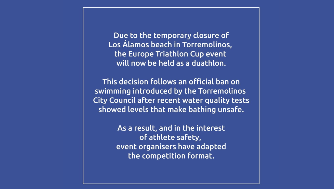 The way Europe Triathlon is communicating this news is somewhat remarkable: they have only provided a reference to a Spanish article from local media. Athletes are expected to receive more detailed information tomorrow.